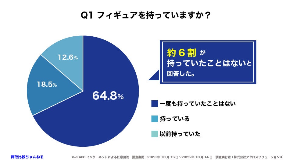 そこで、株式会社アクロスソリューションズと株式会社浜屋が共同運営している買取比較ちゃんねる(URL:https://www.hamaya-corp.co.jp/media )は、20歳〜60歳以上の男女2408人を対象に「フィギュアの買取に関する意識調査」を実施しました。