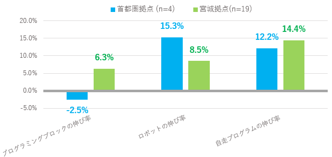 プログラミングブロック(伸び率:6.1%)、続いて、VR体験(伸び率:6.0%)でした。