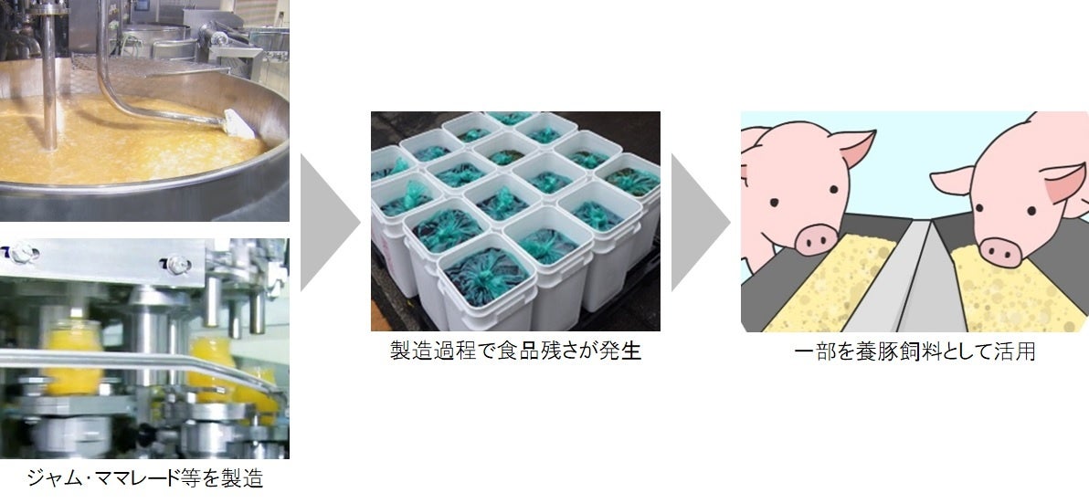 サステナビリティの重点課題の一つに循環型社会への貢献を掲げ、2028年までに商品廃棄・動植物性残さの70%削減(2015年比)を目標にしています。今回の取り組みは、製造過程で発生する商品に出来ないジャム・ママレード等の食品残さをエコフィードとして活用し、食品ロスの削減、資源の有効活用を図ります。