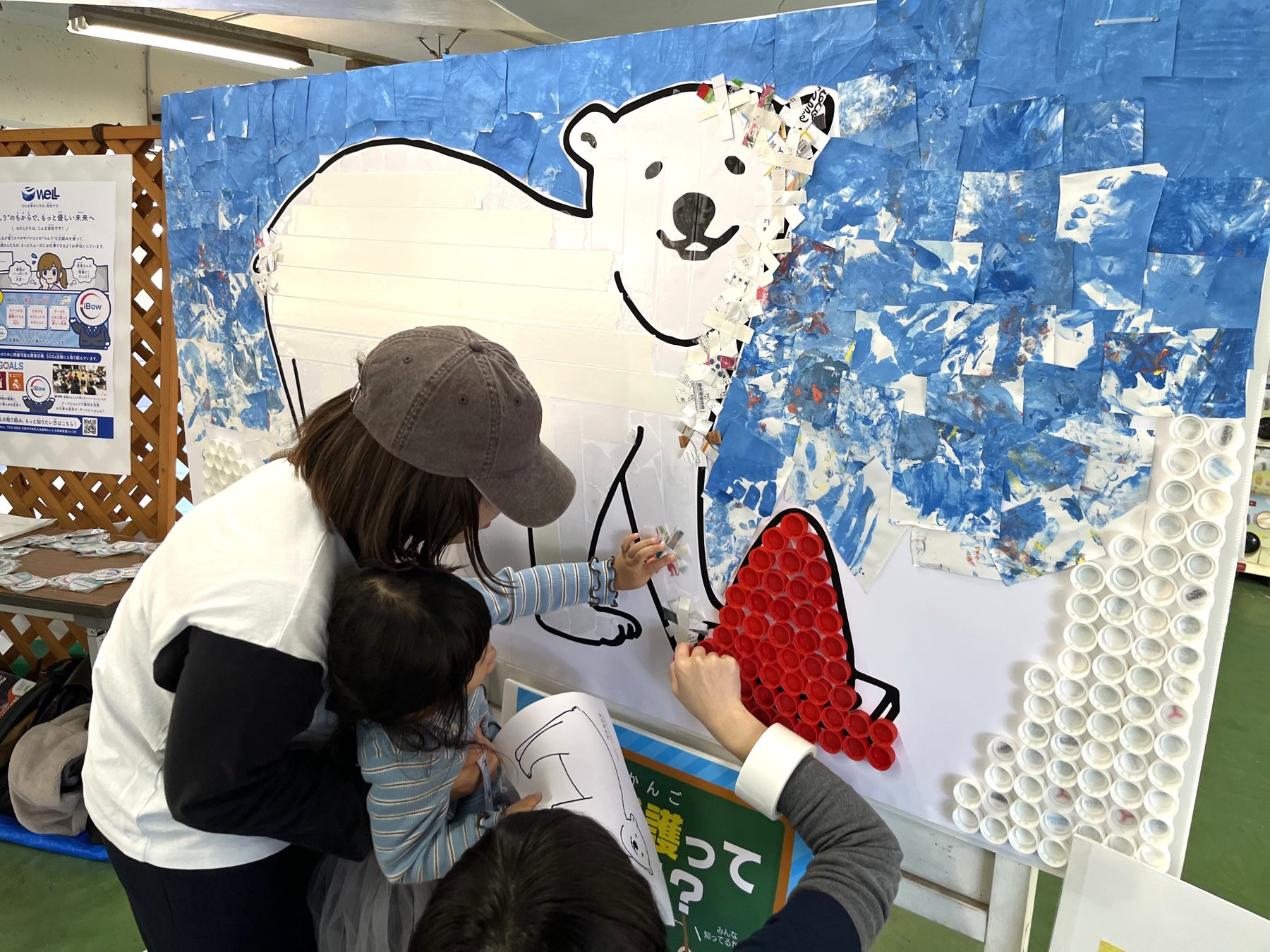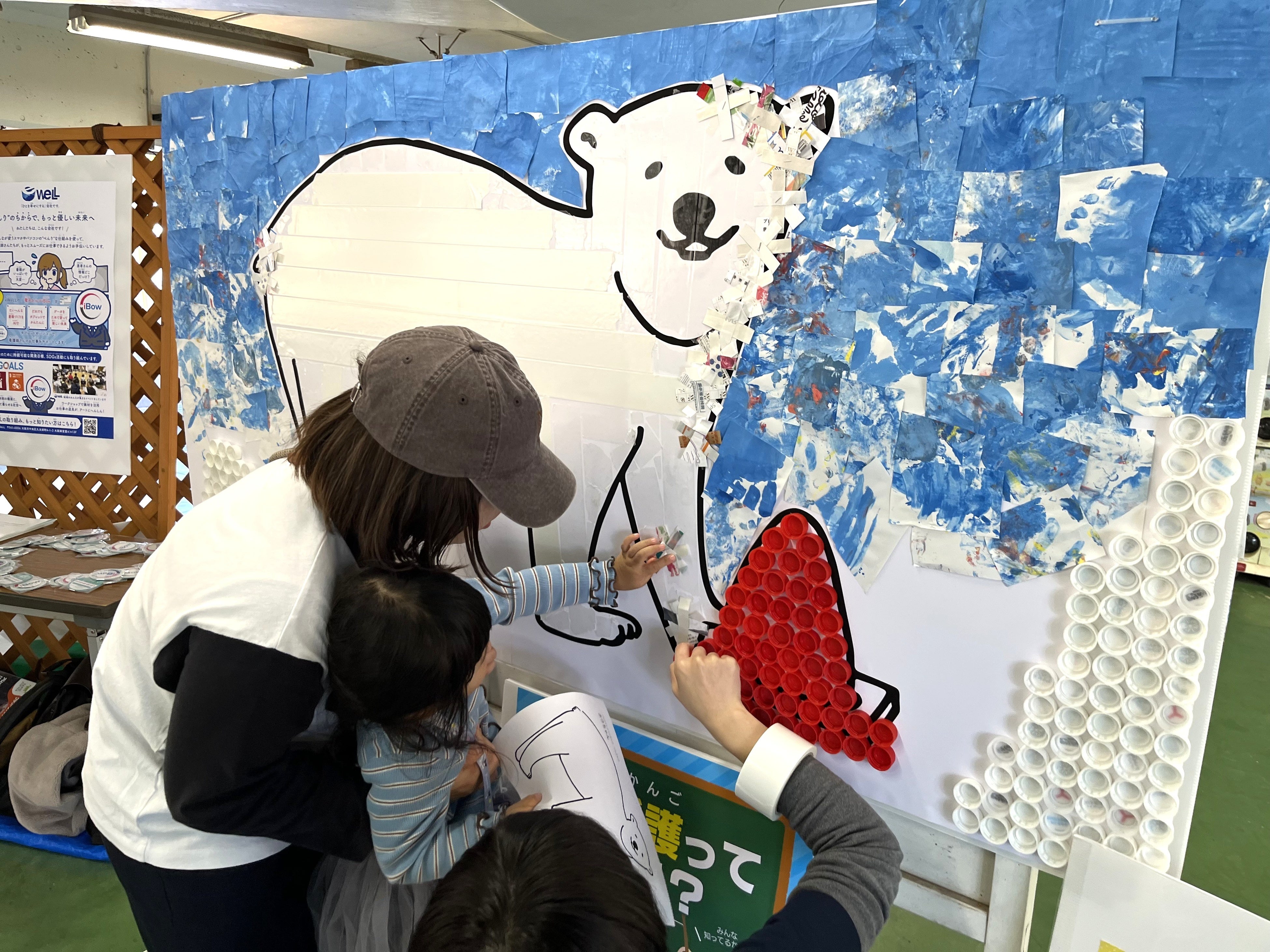 ブースでは、天王寺動物園の人気者「ホッキョクグマ・ホウちゃん」「ライオン・ガオウくん」をモチーフとした大型のモザイクアートづくりを実施。