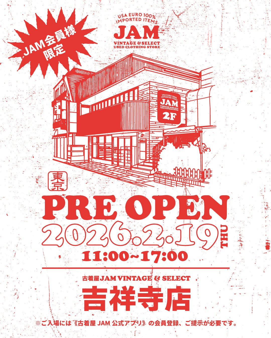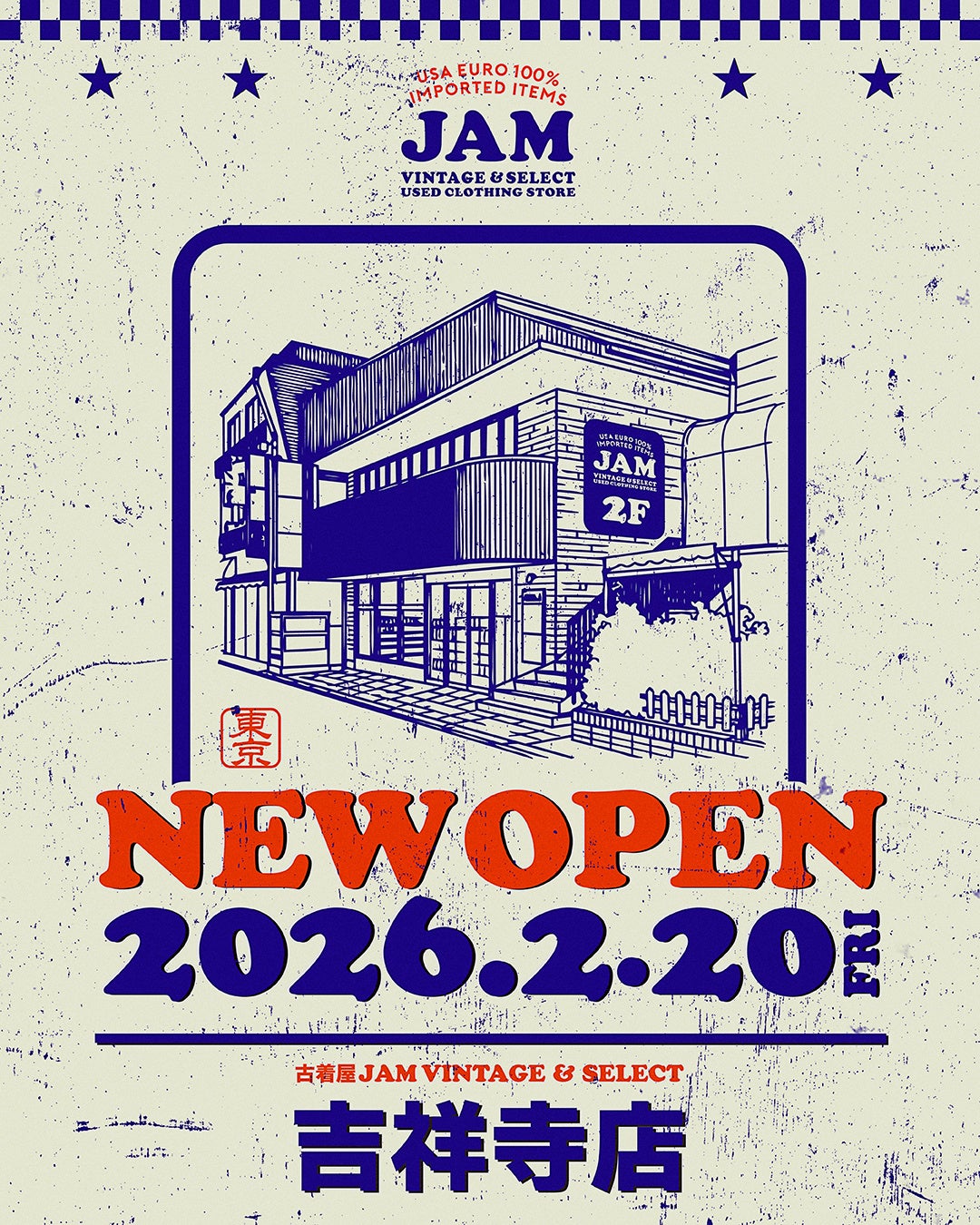 株式会社JAM TRADING(大阪府大阪市/代表取締役 福嶋 政憲)は2026年2月20日(金)に「古着屋JAM VINTAGE&SELECT 吉祥寺店※以下、吉祥寺店」をオープンいたします。