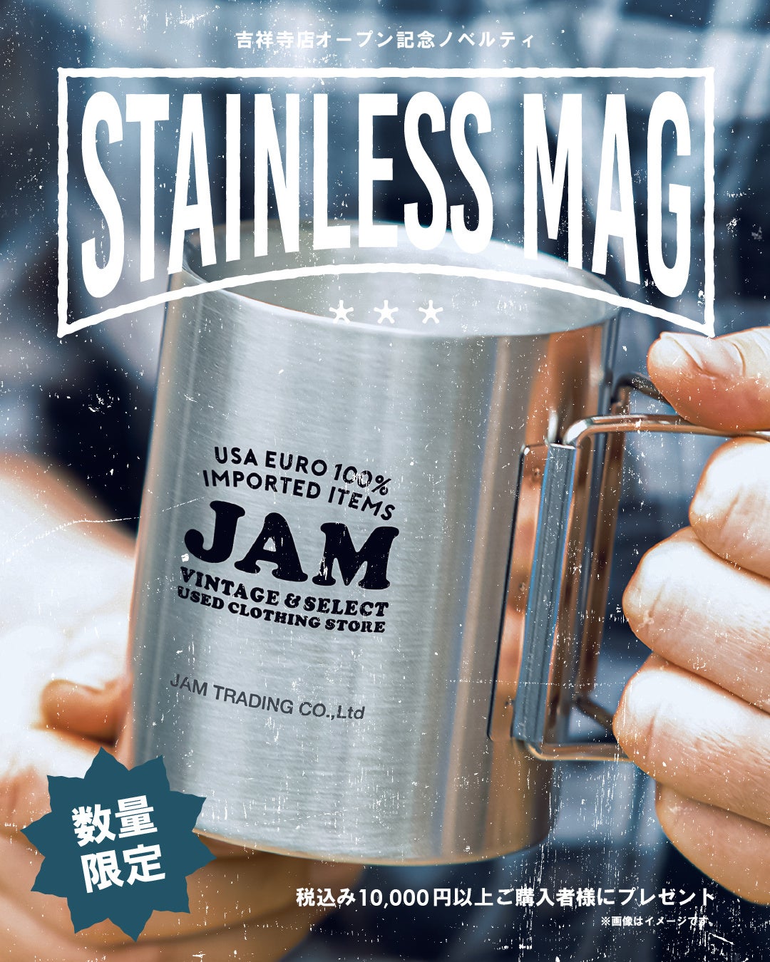 アウトドアブランドの商品入荷に合わせて、室内外どこでもお使いいただける機能性の高いステンレスマグカップをJAMロゴ入りでご用意いたしました。