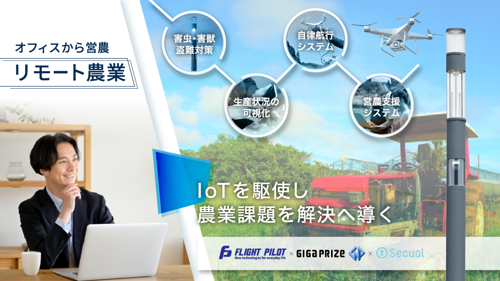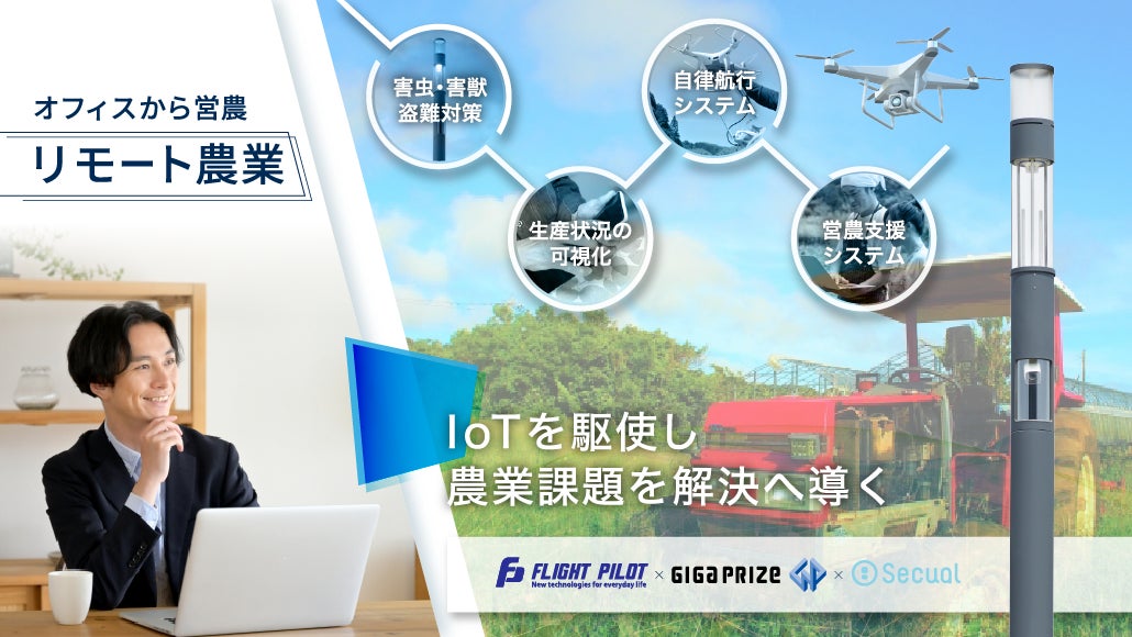 株式会社Flight PILOT(本社:長崎県佐世保市、代表取締役:川上 貴之、以下「Flight PILOT社」)、株式会社ギガプライズ(本社:東京都渋谷区、代表取締役社長:佐藤 寿洋、以下「ギガプライズ社」)および 株式会社Secual(本社:東京都渋谷区、代表取締役:菊池 正和、以下「Secual社」)は、Flight PILOT社が有する圃場に、ICT機能を搭載した次世代の街灯を設置し、リモート農業向けの実証実験を12月17日から開始いたします。