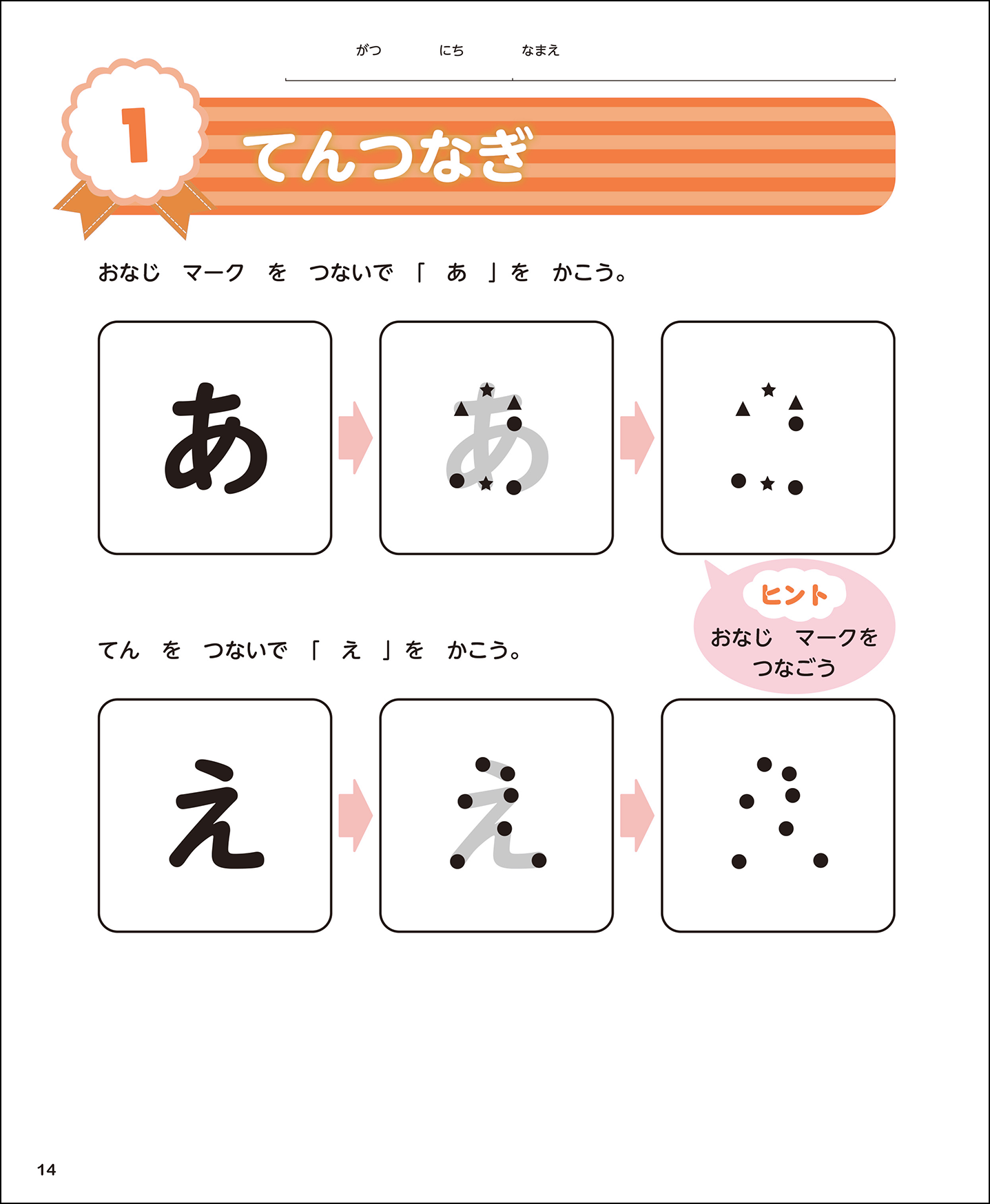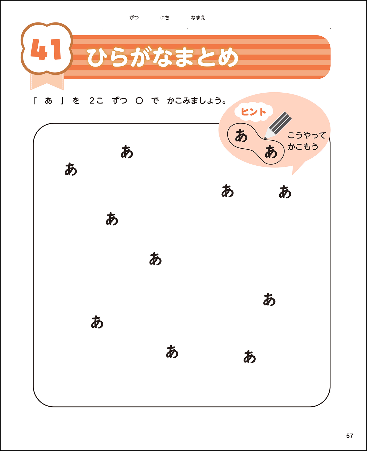 一般的なドリル帳とは違って同じ文字を何度も書くといったことはありません。遊び感覚で、楽しく取り組むことができます。