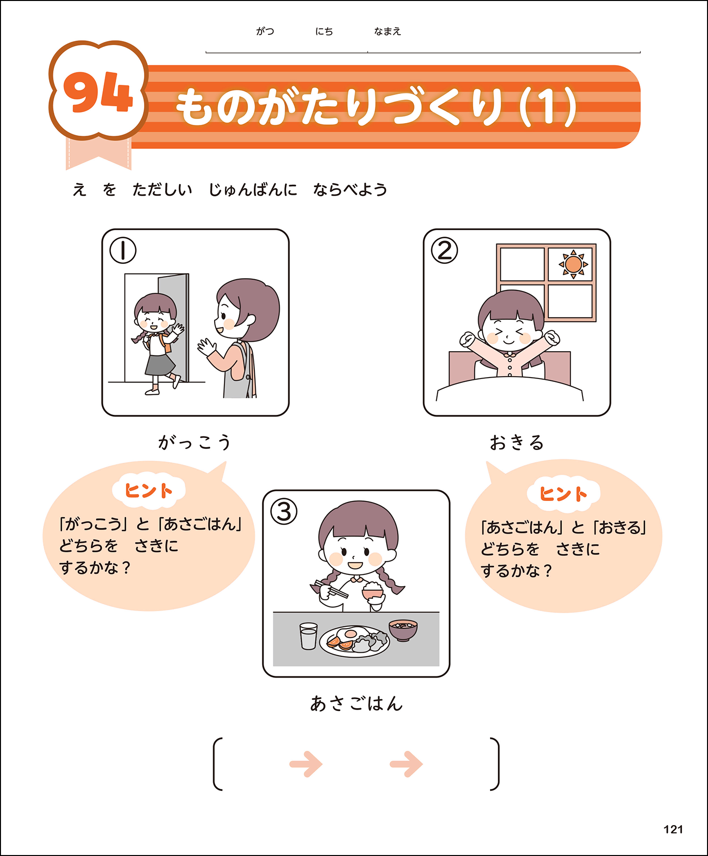 断片的な情報から全体を想像する力や、ストーリーを考えることで時間概念や論理的思考力を養います。