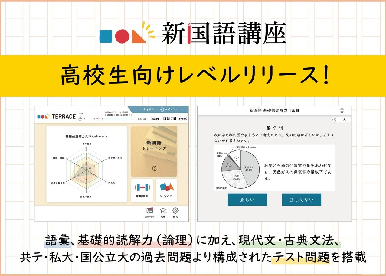 【7月18日リリース】次世代に必須の国語力を育むコンテンツ「新国語講座」に高校生レベルが追加搭載