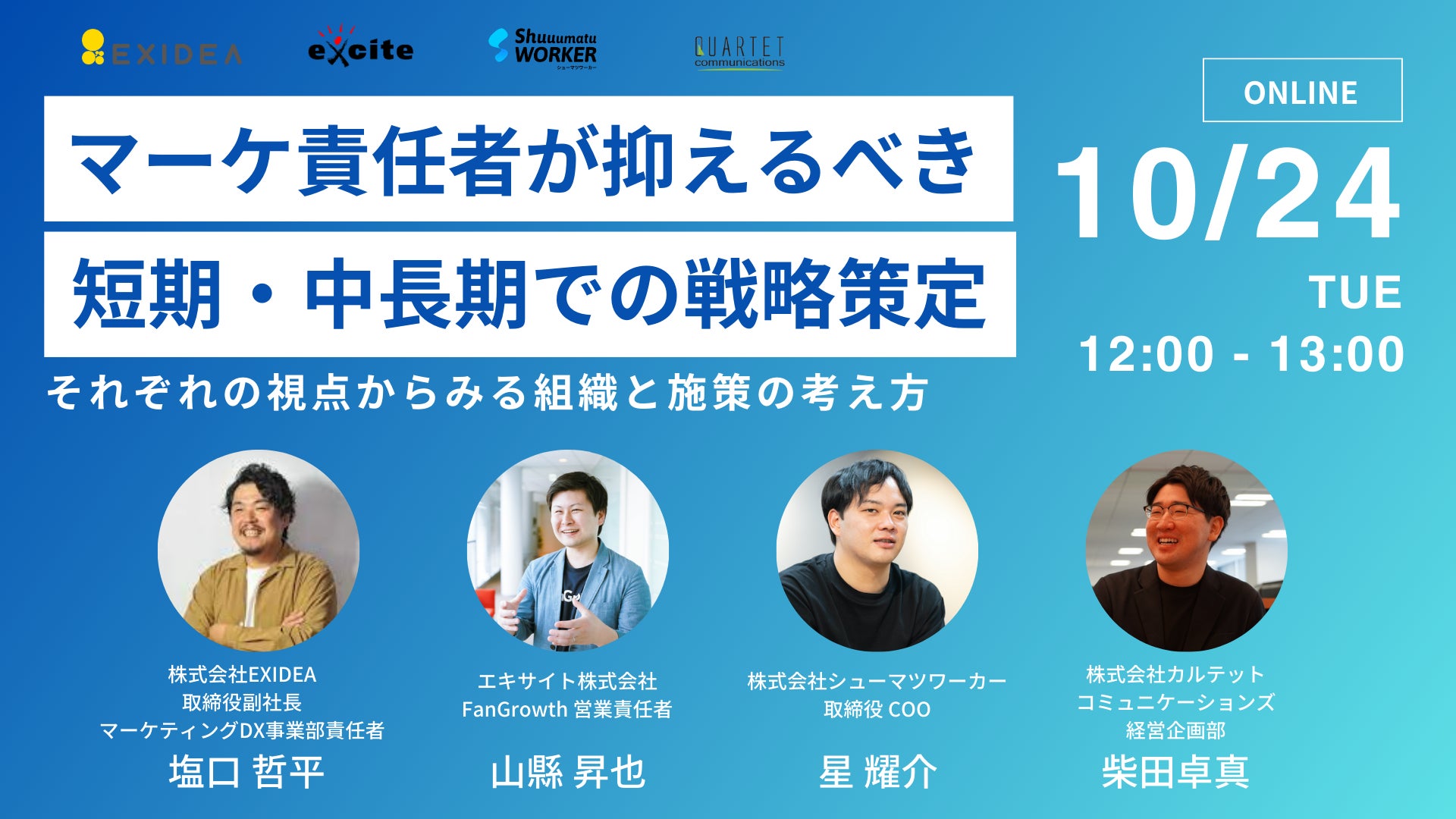 【BtoBマーケティングの中長期視点を養う60分】シューマツワーカー共催セミナー EXIDEA・カルテットコミュニケーションズ・エキサイト各社の事業責任者が登壇!