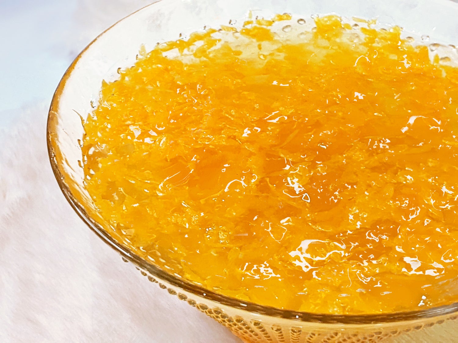 ゆずの豊かな香りが鼻を抜け、みかんの果肉から甘みがはじけるゼリーです。お口の中で爽やかな香りが広がり、食後のお口直しにピッタリです。