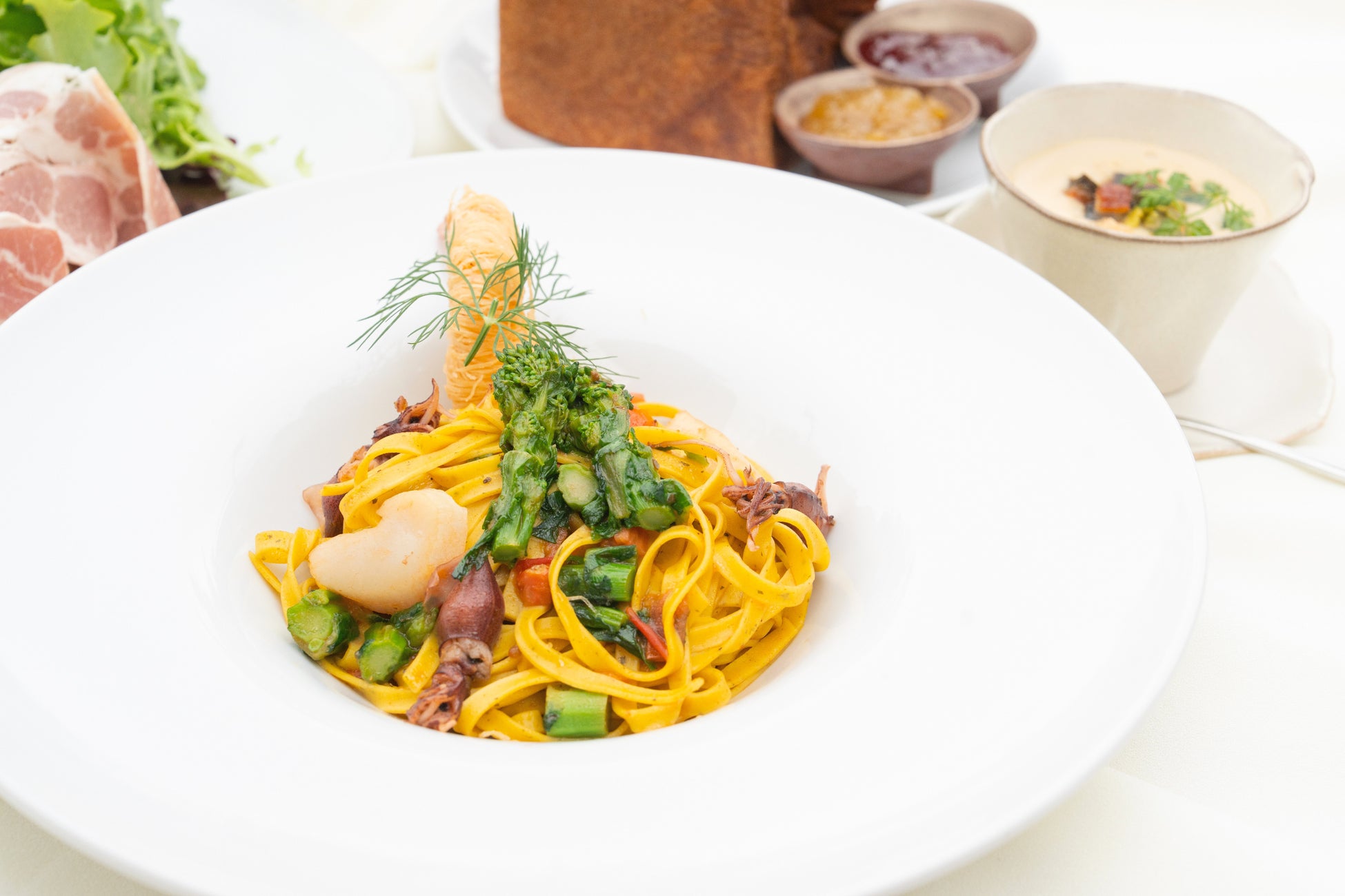 「パンとエスプレッソと異人館」のパンを取り入れたコラボレーションランチでは、地元食材を使った神戸ポークカツレツなどシェフ特製メニューを4種類ご用意。ゆったりと寛げるバンケットで提供するほか、開放的なルーフトップテラスにてワンちゃんと一緒に楽しんでいただくことも可能です。