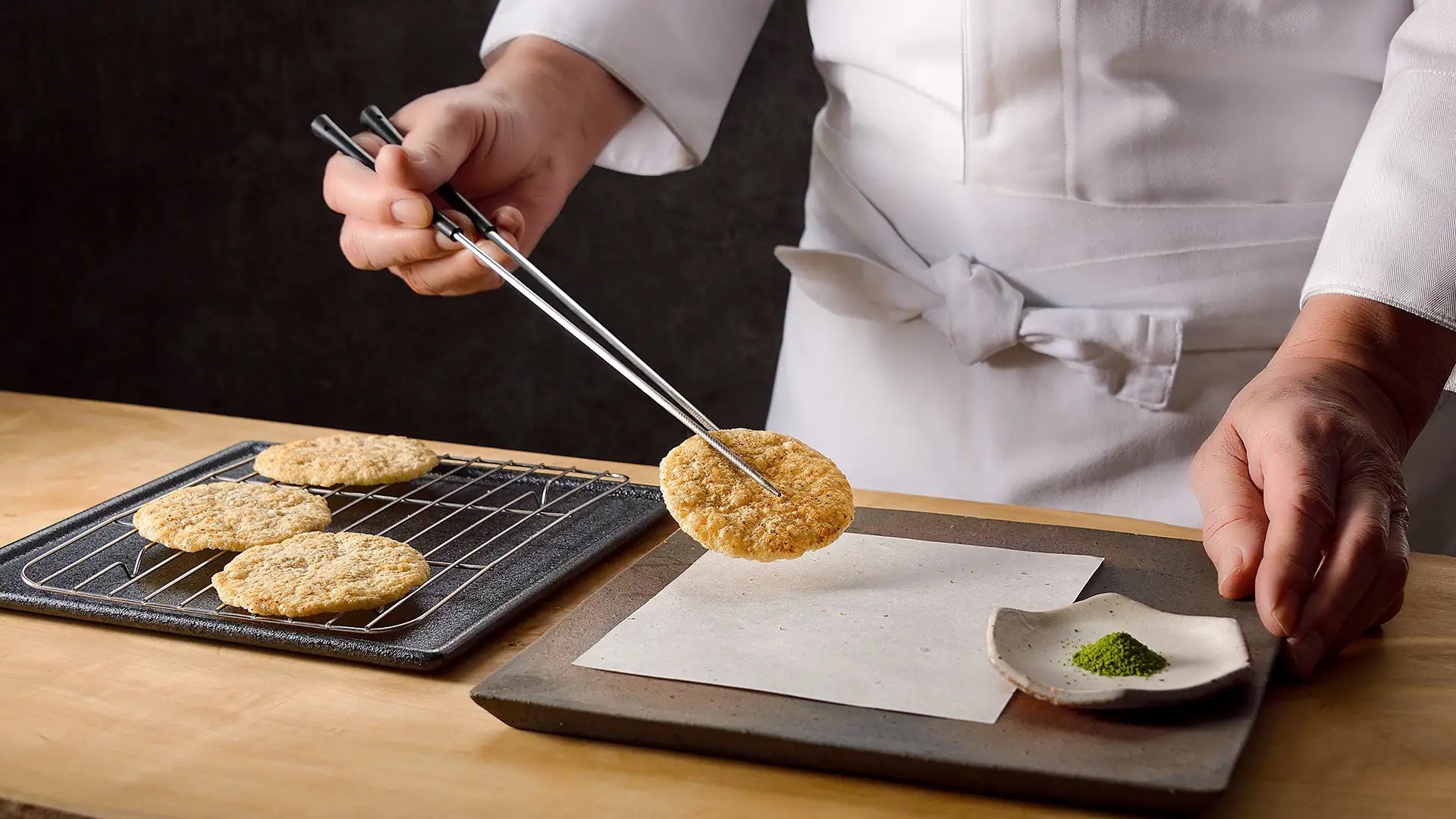 その鍛え上げられた目利きと技術との出会いにより織りなす、本格派せんべい。贅沢な風味をお楽しみください。