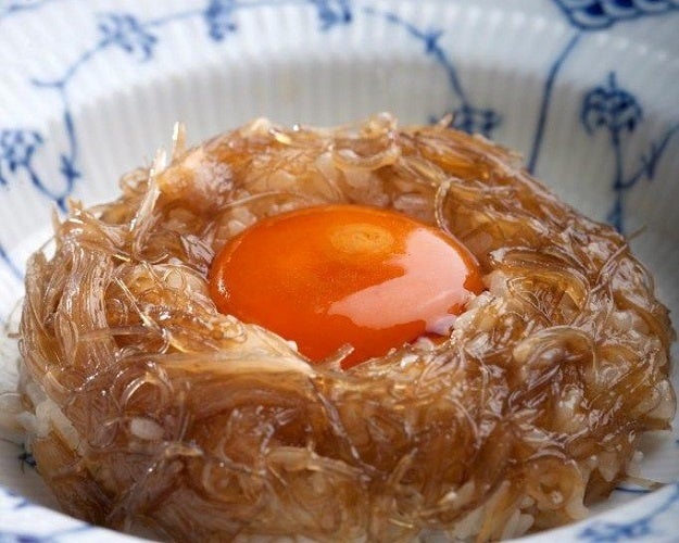 ほぐしたフカヒレをとろとろに煮込み、炊き立てのご飯にたっぷりとかけて、醤油漬けにした卵黄をのせてお月見のような仕上がりに。とろける黄身と、濃厚なフカヒレの味わいを心行くまでご堪能ください。