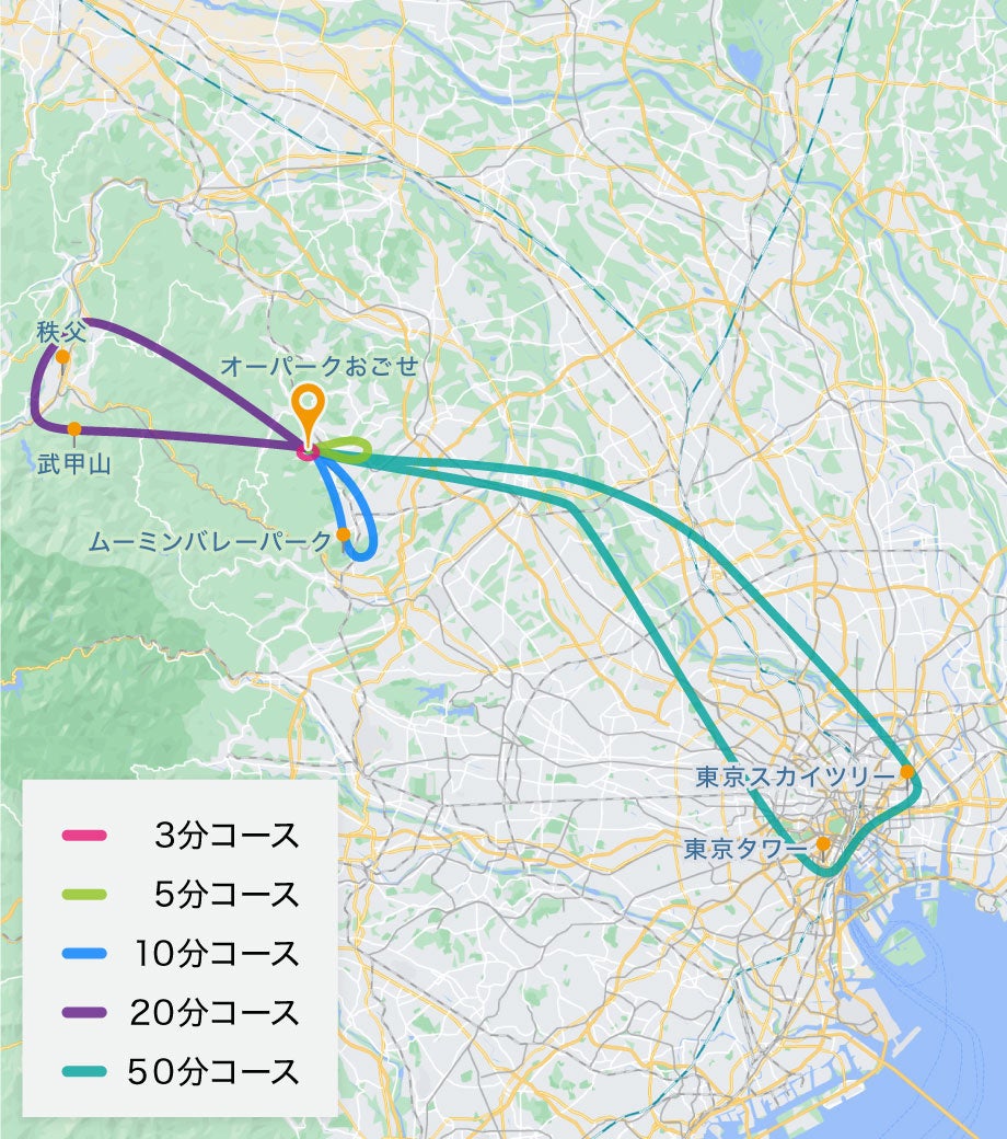 | 東京、埼玉周遊コース | 50分 | ¥65,000 |