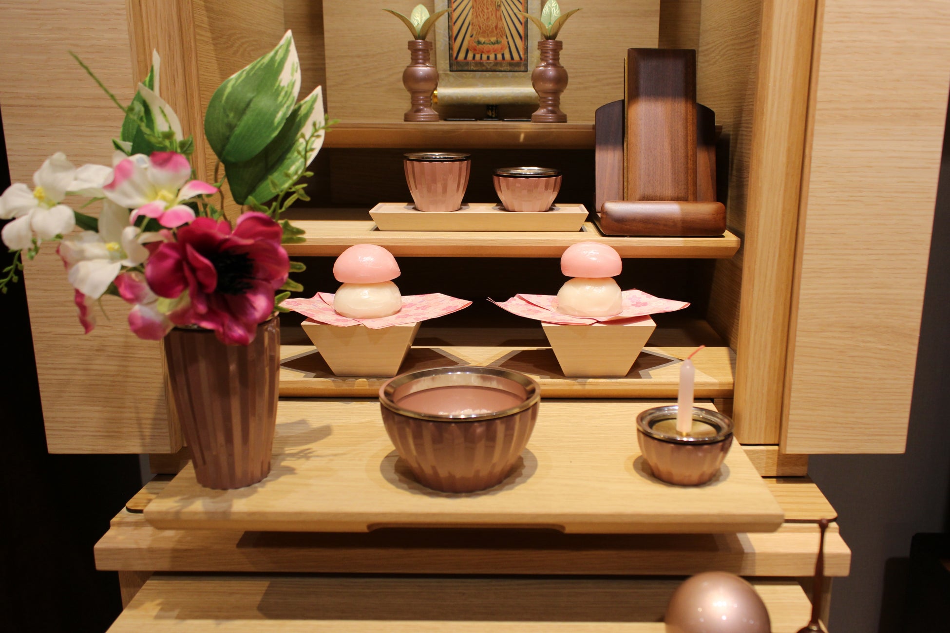 古来より、紅白もちは「けじめ」や「祈りの象徴」として用いられてきました。お仏壇やお墓を購入した際にお祝いをする文化があり、現在でも、お仏壇開きの時などにお供えとして用いられています。