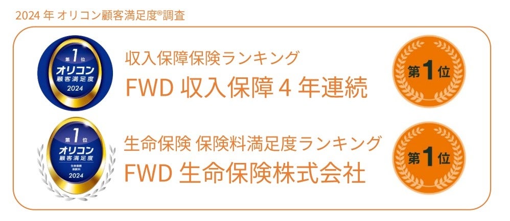 FWD生命、2024年 オリコン顧客満足度調査において、『収入保障保険』ランキングで4年連続第1位、また当社が生命保険 保険料満足度ランキングで1位を獲得