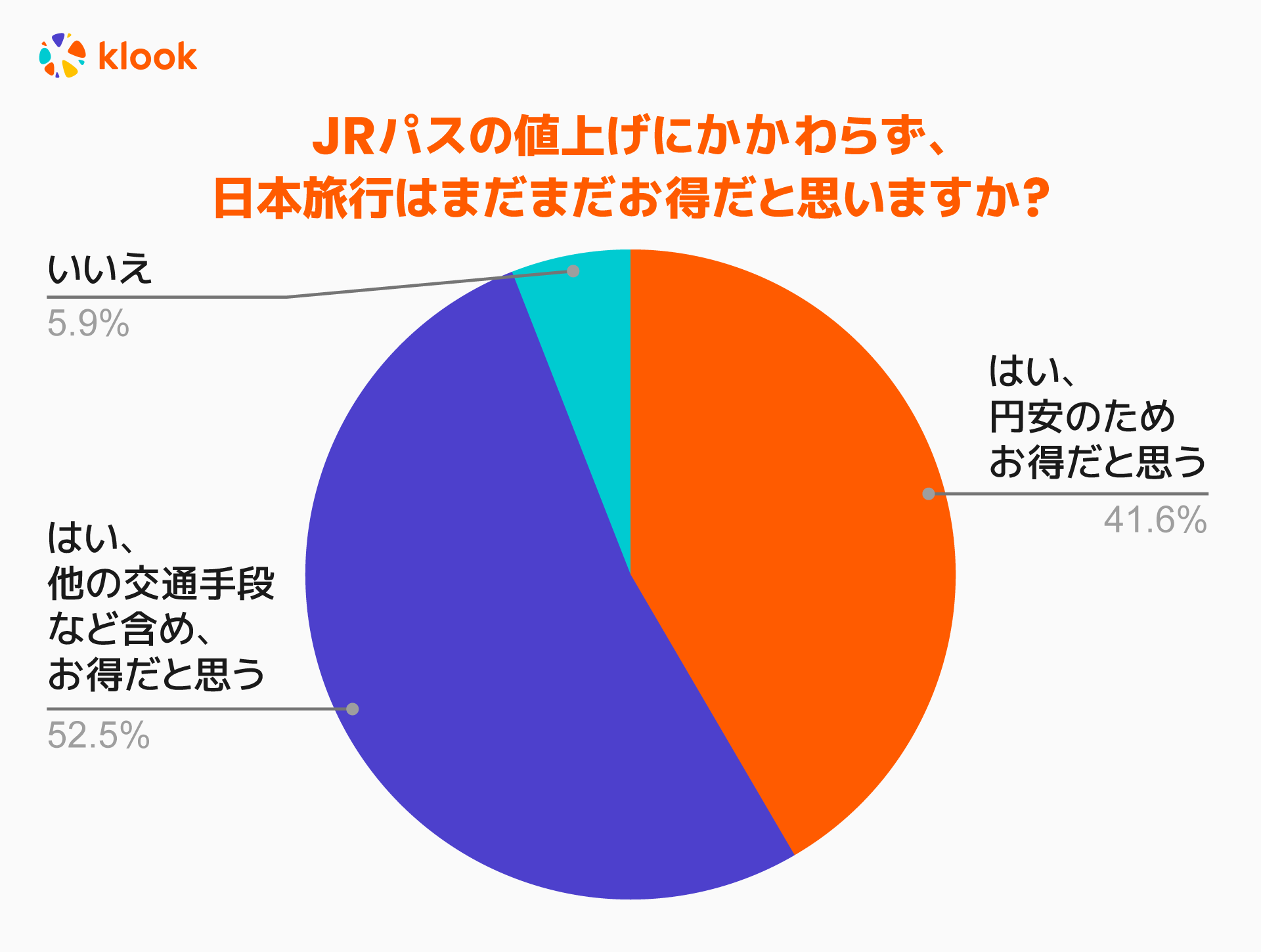 一方で、94%の旅行者が、円安などを理由に日本への旅行はまだまだお得と回答し、JRパスの値上げに関する懸念は、日本への旅行需要にはほとんど影響を与えていないことが判明しました。