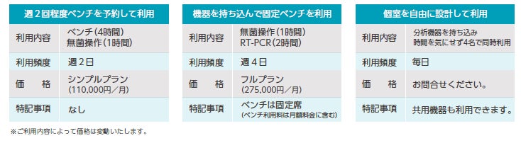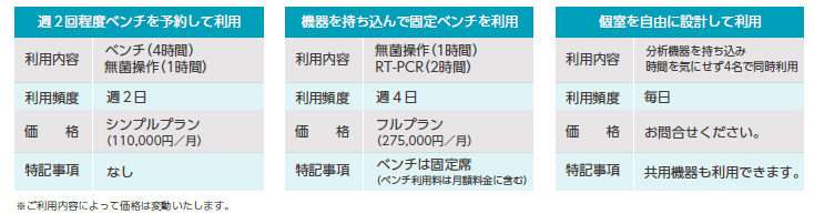 ▼時間単位でレンタル、ラボ管理不要/研究に専念できる環境をお得に、フレキシブルに