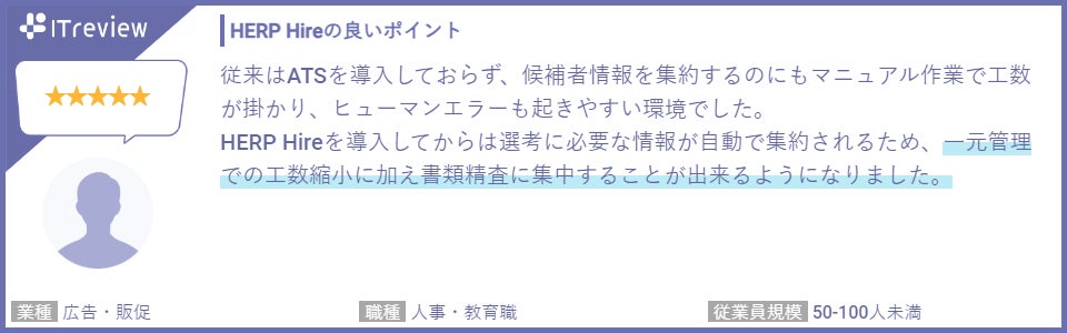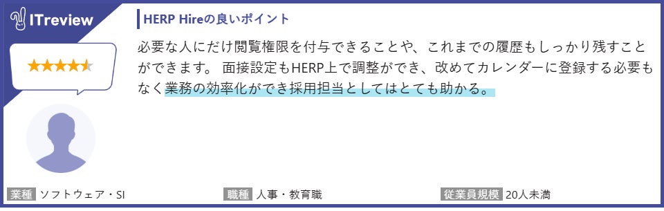 この度『HERP Hire』は「ITreview Grid Award 2025 Winter」の採用管理システム(ATS)部門において「Leader」を受賞しました。また同部門では、「使いやすさ」「導入のしやすさ」「管理のしやすさ」「応募者情報の管理機能」でNo.1を獲得しています。