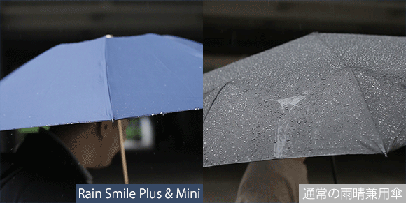 「Rain Smile Plus & Mini」に施されたブラックコーティングは、剥離紙の製造に用いられる塗工技術を採用し紫外線を効率よくカット。生地のなめらかさと軽さをキープしながら、通気性も確保されます。
