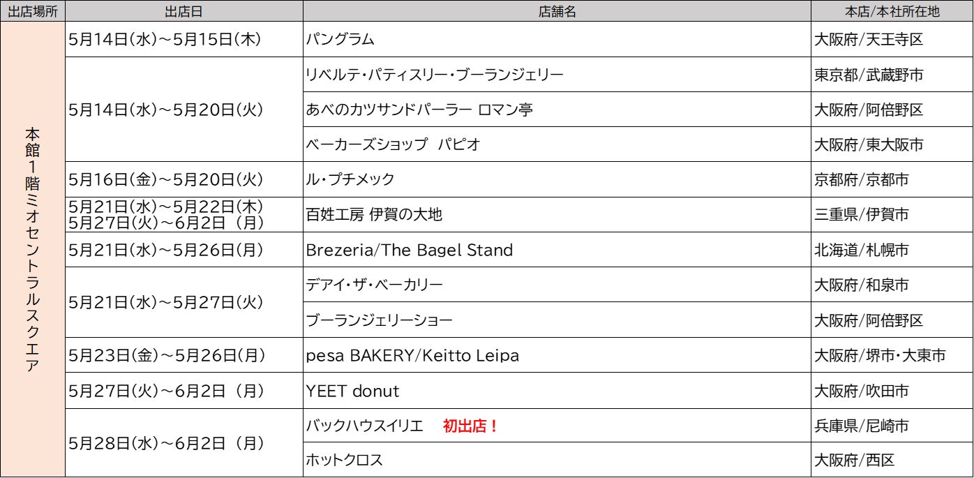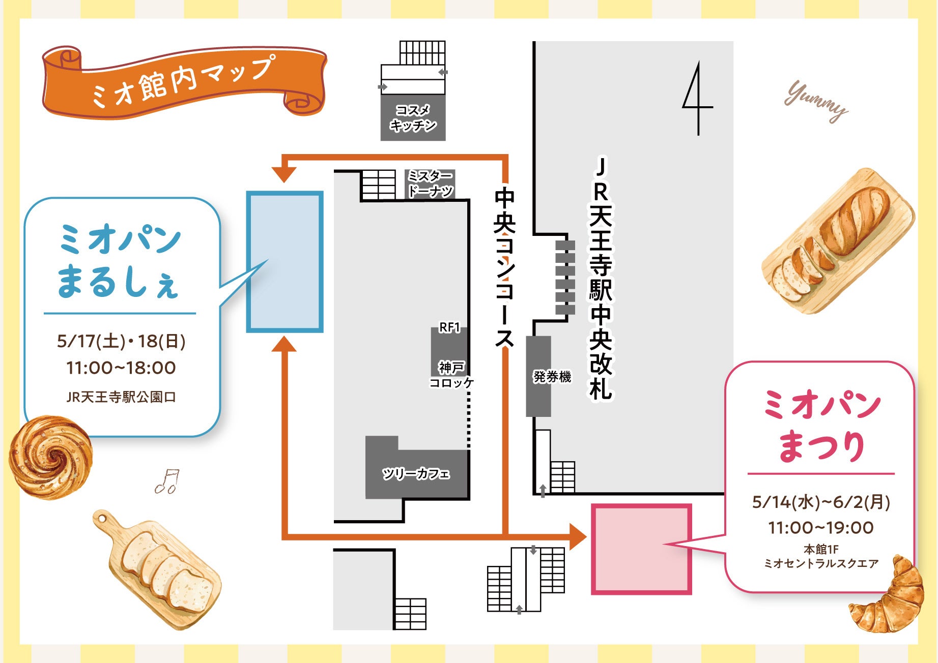 JR西日本SC開発株式会社(本社:大阪市北区梅田)が運営する大型ショッピングセンター「天王寺ミオ」では、5月14日(水)~6月2日(月)の期間、本館1Fミオセントラルスクエアにて「春のミオパンまつり」、5月17日(土)~18日(日)の2日間、JR天王寺駅公園口にて「春のミオパンまるしぇ」を開催いたします。天王寺・阿倍野エリアの賑わい創出はもちろん、パンを選ぶワクワク感を通じてお客様一人ひとりの日々の暮らしに「彩り」を提供したいという想いのもと、当イベントを本年度も開催いたします!