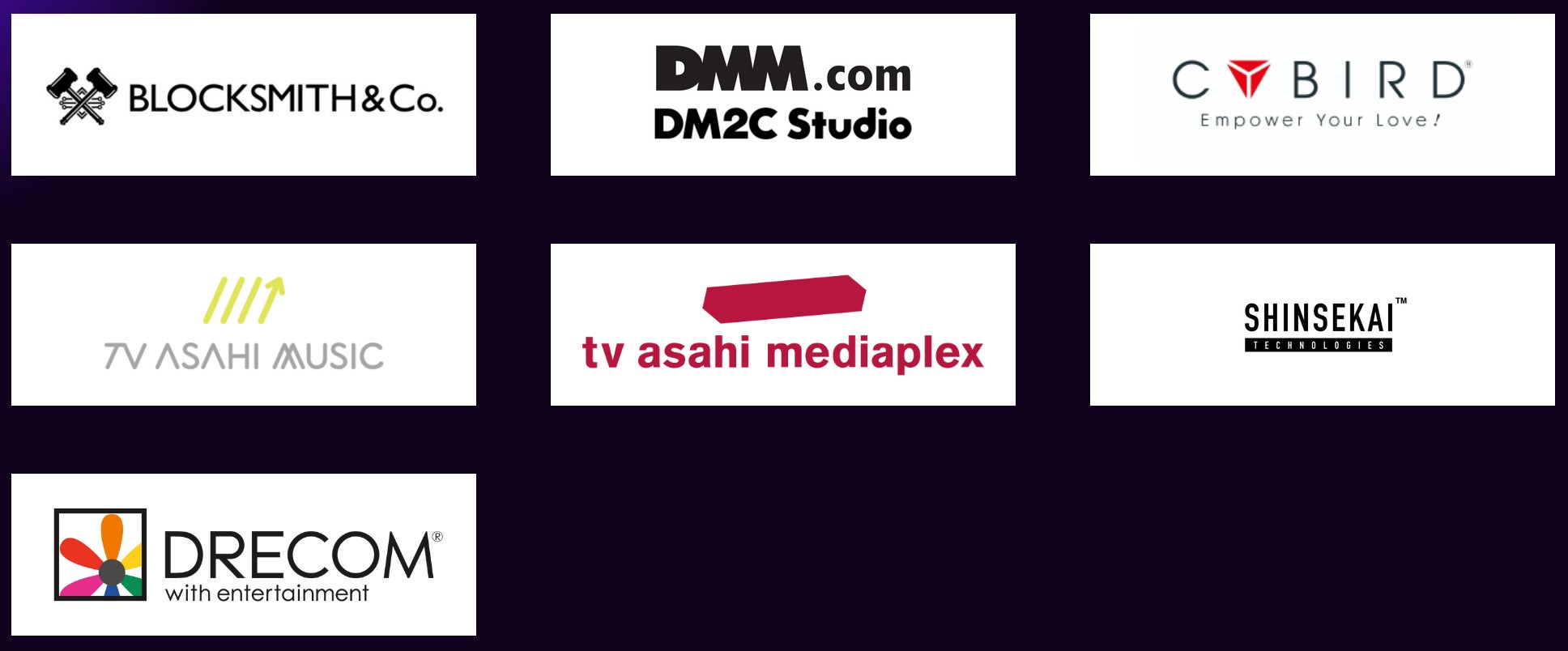 株式会社BLOCKSMITH&Co.、合同会社DMM.com・DM2C Studio、株式会社ドリコム、株式会社サイバード、株式会社テレビ朝日ミュージック、株式会社テレビ朝日メディアプレックス、株式会社SHINSEKAI Technologies(順不同・敬称略)