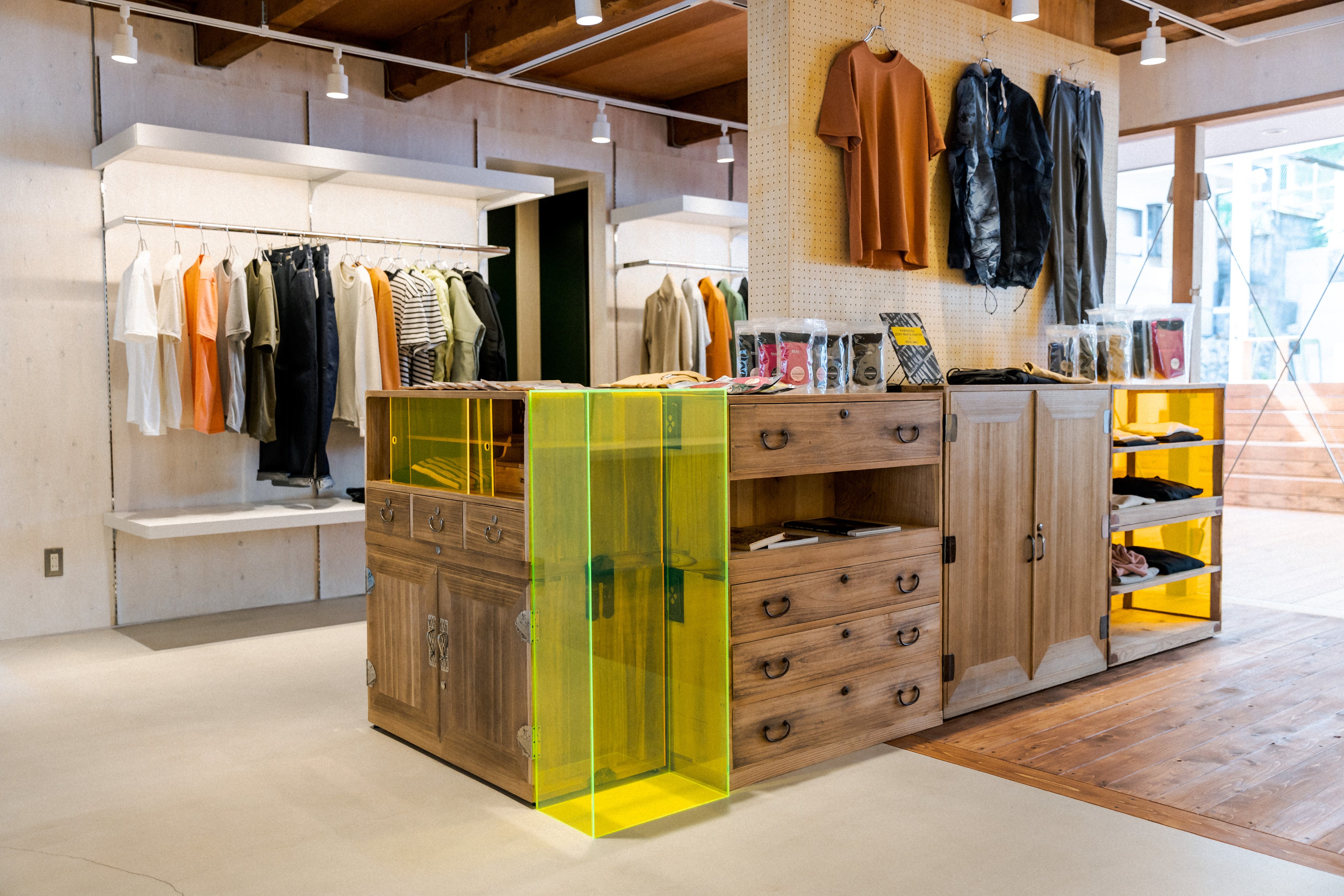 左)アパレル製品の販売スペース