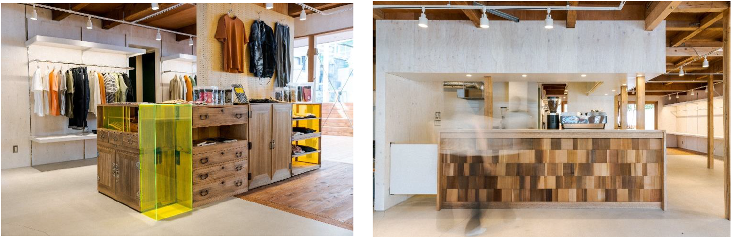 「BRING CIRCULAR TAKAO」は“循環する体験を拡張する”をコンセプトに、サステナブルなアパレル製品の販売・衣類回収をはじめ、環境に配慮したコーヒー豆を厳選して風味豊かなコーヒー等の飲料を提供します。また、循環を体験いただく様々なイベントを実施する予定です。店舗自体も、地球環境に配慮したサステナブルな店舗運営を目指しており、リノベーション物件による資源活用のほか、店舗を運営する電気は再生エネルギーを使用。内装には古道具をアップサイクルした什器を活用しています。