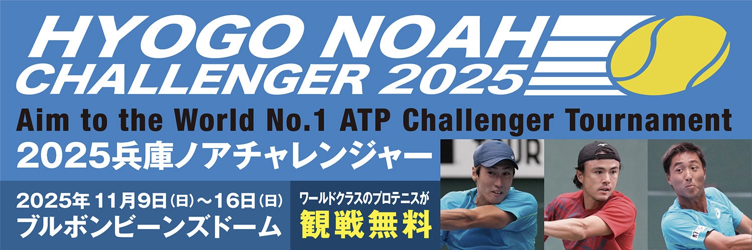 インドアテニススクールを全国に展開する業界大手のノアインドアステージ株式会社(代表取締役社長:大西雅之、本社:姫路市東山524)は、11月9日(日)~16日(日)兵庫県三木市のブルボンビーンズドームで開催される兵庫ノアチャレンジャー2025(賞金総額100,000USドル)に特別協賛します。2015年の初開催以来(20年、21年は中止)今年で9回目の開催となります。これからグランドスラム優勝を目指す、期待の若手選手も数多く出場します。ノアインドアステージは、この大会の開催を通じて、将来世界へ羽ばたく選手達の支援を続けています。