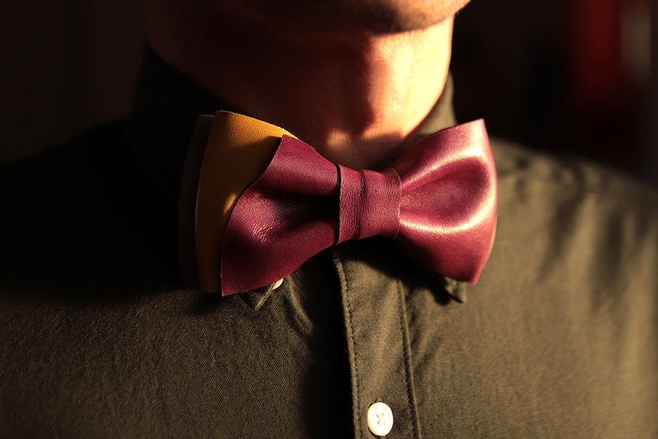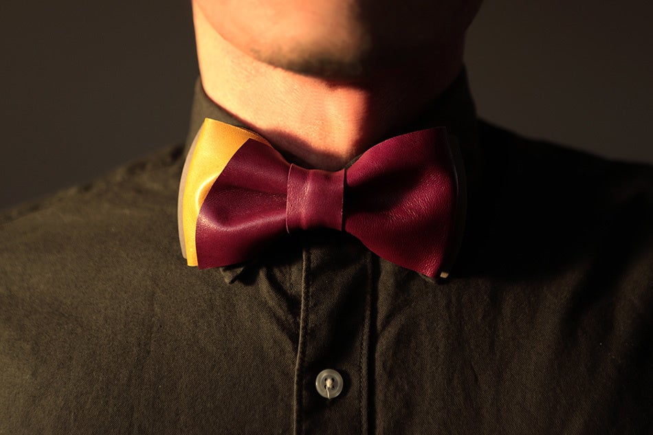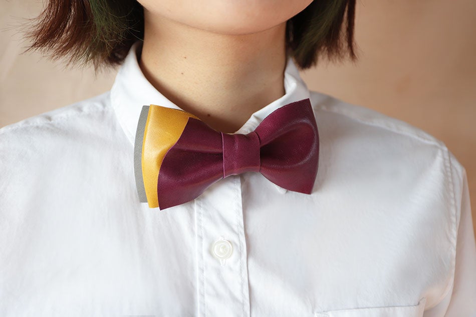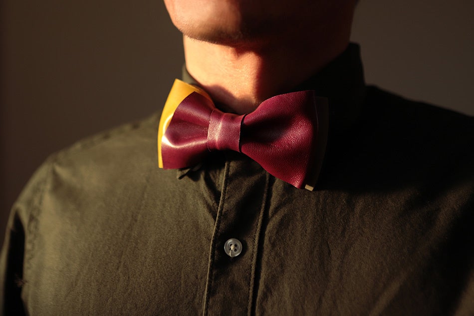 レザーで作ったサツマイモ?グルメリポーター彦摩呂×革職人のコラボ「グルメな革の蝶ネクタイ」11月16日”いいイモの日”に登場。