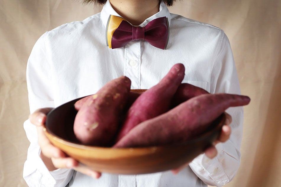 グルメな革の蝶ネクタイ”第5弾は焼き芋”デザイン