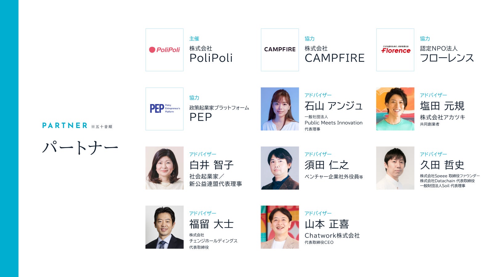 今回、私個人がエンジェル投資家としても参画し応援しているPoliPoli社と共同で、公益性の高い活動をしながら政策提言を行い国策にも貢献していくリーダーの方々を応援するため、この寄付基金を立ち上げました。