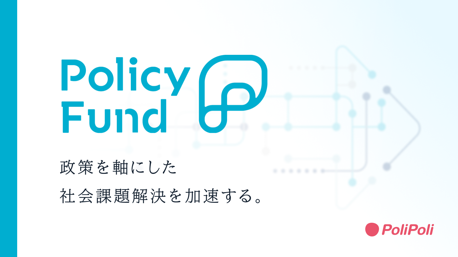 政策共創を実現するプラットフォームの企画・運営をする株式会社PoliPoli(東京都千代田区、代表取締役:伊藤和真、以下 PoliPoli)は、新たな寄付基金事業「Policy Fund」を開始したことをお知らせします。社会課題解決のため、起業家や投資家などの寄付で基金を設立し、必要とするNPOや「ルールメイカー※」たちによる社会課題解決を支援する新しい仕組みをつくります。