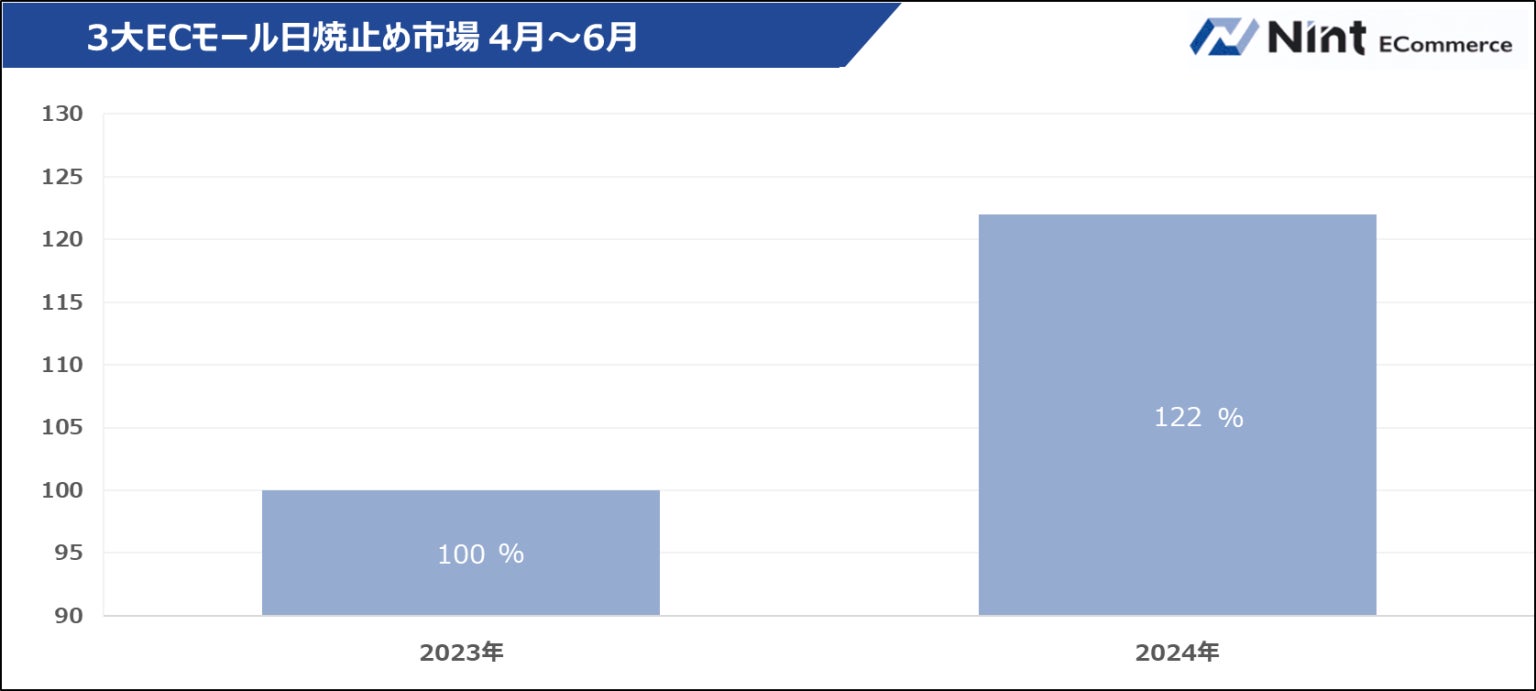 ECモールの日焼け止め市場規模は、前年比1.22倍で急速に拡大(2024年4~6月)