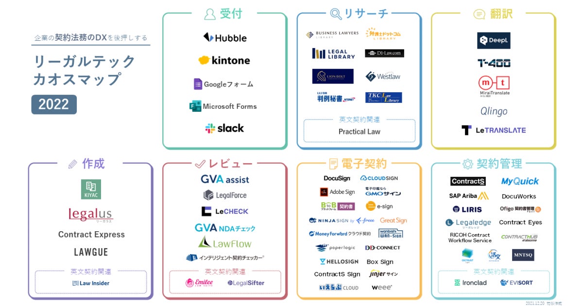 法務領域でのDXを加速させるリーガルテックを提供するGVA TECHが「企業の契約法務のDXを後押しするリーガルテックカオスマップ2022」を公開。