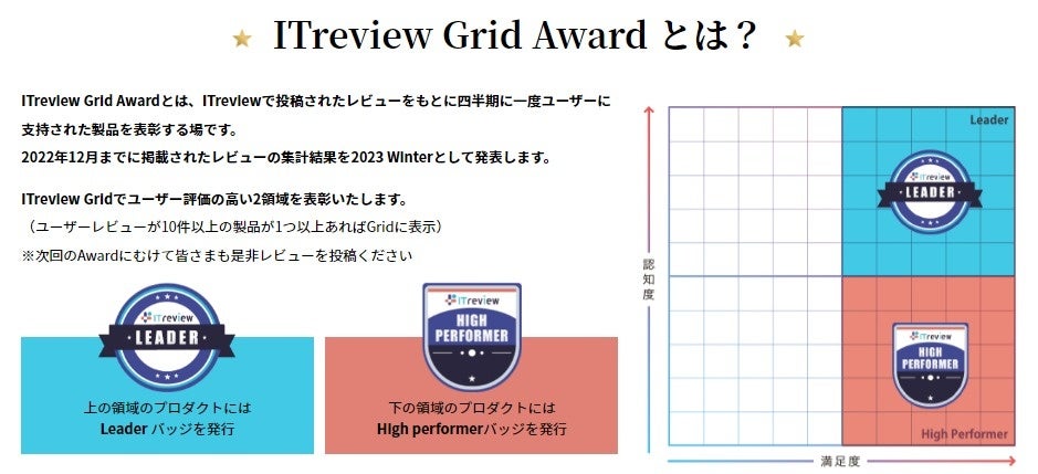 ◆ITreview Grid Award 2023 Winter:10万件以上のユーザーレビューから選ばれた受賞製品の一部をご紹介
