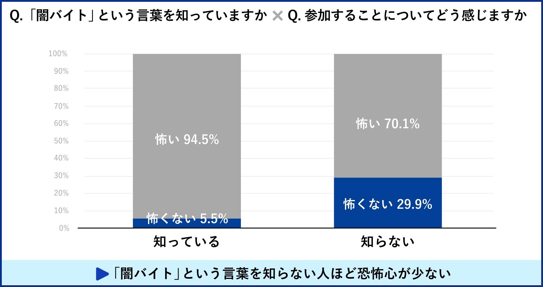 「闇バイト」という言葉を知らない人ほど、恐怖心も少ないことがわかりました。犯罪と知らずに闇バイトに加担する危険が高くなる可能性があります。