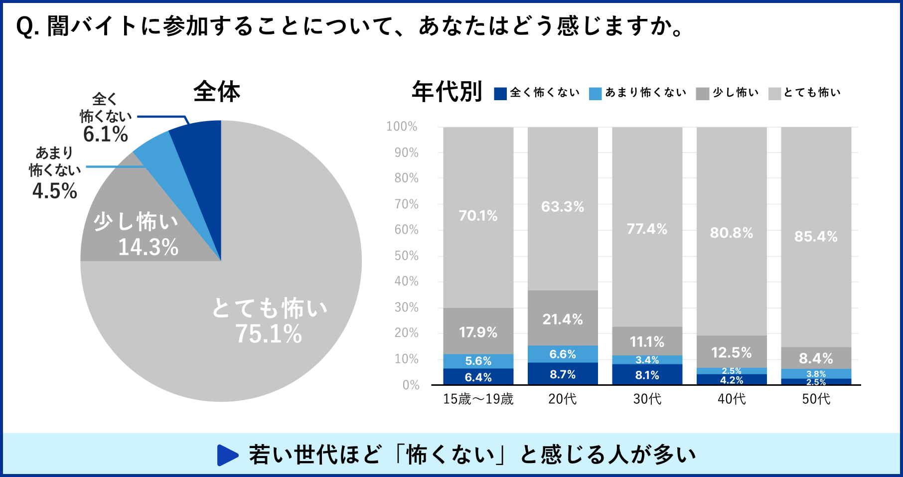 闇バイトに参加することについて、全体の約10%が「怖くない」と回答