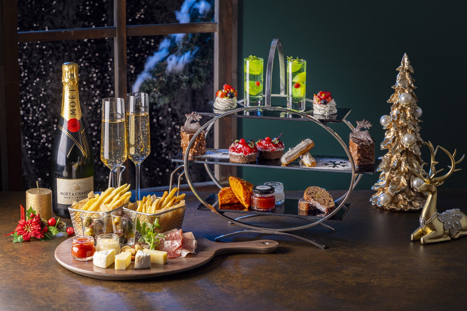 パウダースノーがきらめく一面の銀世界のなか、フェスティブシーズンを楽しむクリスマススイーツ6種類、スコーン1種類、セイボリー3種類をご用意しました。