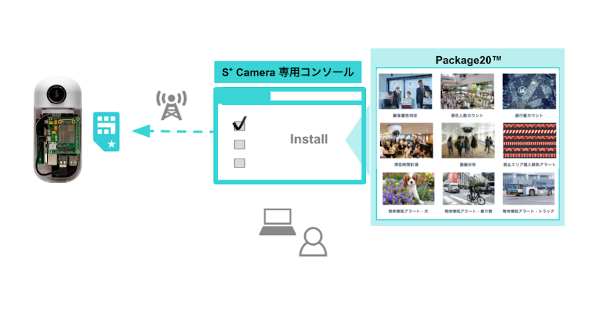 これらのAIアルゴリズムを含む「Package20™」は、S+ Cameraの専用コンソール内「S+ AIマーケット」にて9,800円(税込)でも提供されており、お客様は本パッケージを購入して、用途にあわせたAIカメラソリューションを開発していただくことも可能です。