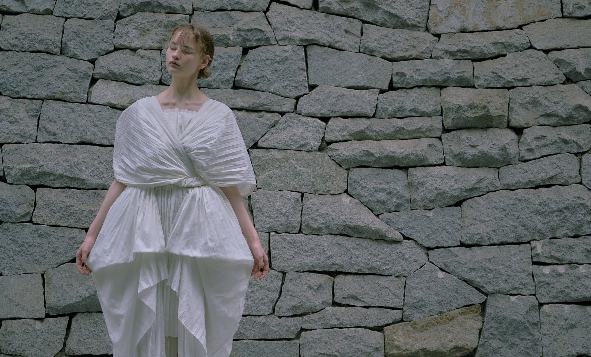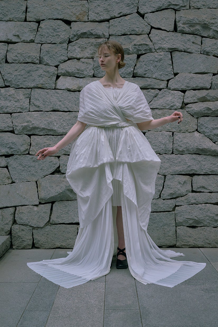 産学連携プロジェクトはその一環であり、今回は同素材から生まれた生地を使用し、ウェディングドレスを制作。ファッション業界を取り巻くネガティブな環境問題をはじめとする諸問題をポジティブな視点へと変換していく次なる一歩を切り拓くことを目指します。