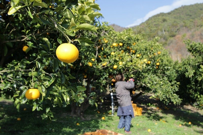 八朔の生産量は、全国1位が和歌山県、次いで広島・愛媛などの瀬戸内です。瀬戸内では恵まれた気候と風土で柑橘類が育てられており、古くから栽培が盛んで、おいしい柑橘が育ちます。しかし、八朔の収穫量自体が年々減少傾向にあります。1980年前半には約20万トンだった収穫量は2010年代には約3万トンにまで減っています。(参考:農林水産省統計)八朔をはじめとする晩柑類は、苗木から果実が実るまで15年以上、貯蔵期間は約2ヶ月と時間をかけ、ようやく食べられる柑橘。大自然の中で強くたくましく生きる八朔の生産には相当な手間ひまがかかっており、育てるのが難しく、さらには農業従事者の減少による担い手不足が続いている現状があります。