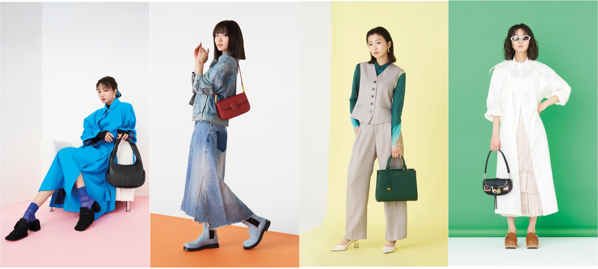 定番のチェルシーブーツをトレンドのデニム素材で仕上げた「Bryn ブライン デニムチェルシーブーツ」は、クラシックな要素とカジュアルな要素を併せ持ち、様々なファッションで楽しめる一足です。バッグは昨年から人気の続く「Koa コア スクエアプッシュロックショルダーバッグ」の新色Brickカラー。ミニマルなスクエアシルエットや、マットな素材がコーディネートにメリハリを与えます。小物を明るいカラーや季節感のある素材に変えるだけで、春らしいコーディネートをいち早く楽しめます。