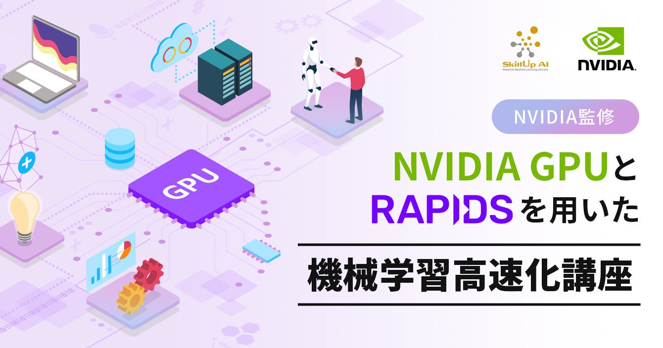 スキルアップAI株式会社(以下スキルアップAI、東京都千代田区神田三崎町3-3-20、代表取締役 田原 眞一)は、エヌビディア合同会社(以下 NVIDIA)の監修のもと、「医療AI講座」と「NVIDIA GPUとRAPIDSを用いた機械学習高速化講座」を開発し、10月より順次提供開始します。いずれの講座も、NVIDIAが展開するソリューションを講座に取り入れることで、講座終了後すぐに実務に活かせる実践的なプログラムの構築が可能となりました。