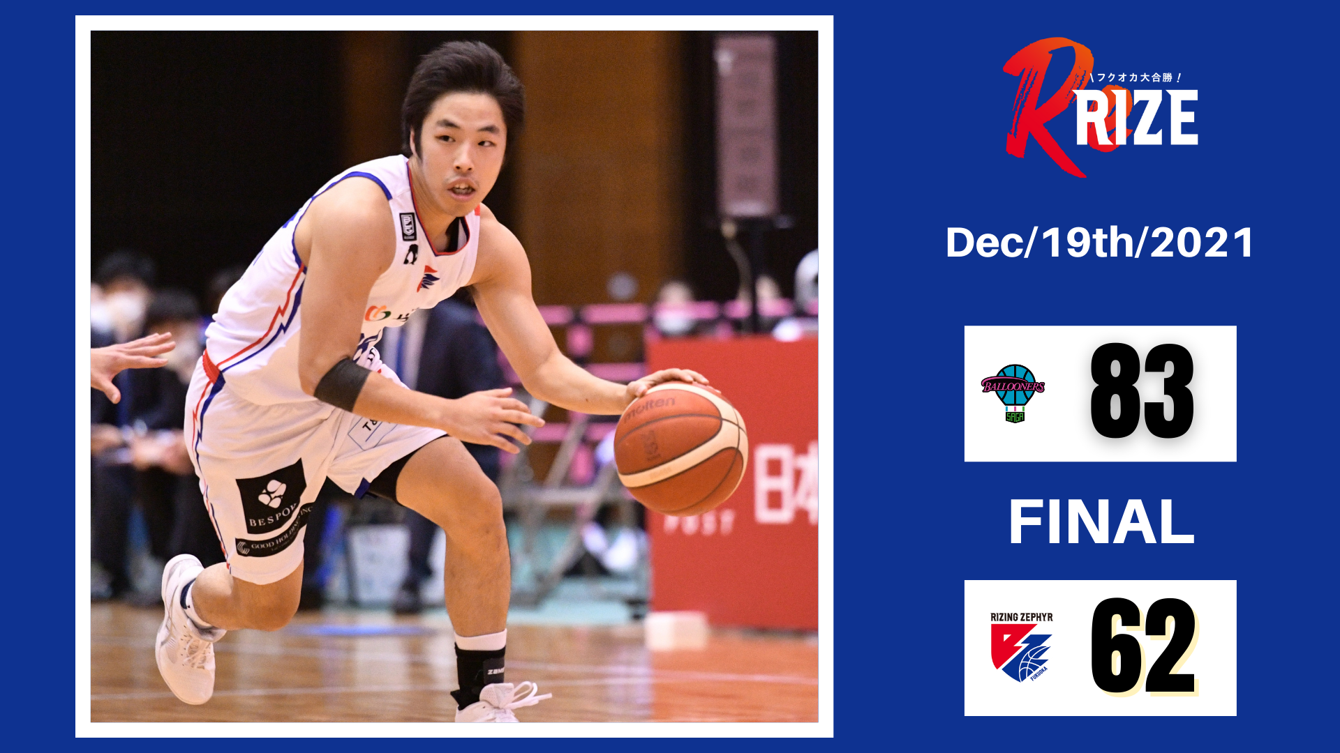 2021年12月19日(日)に開催されましたBリーグ第12節【佐賀バルーナーズvs.ライジングゼファーフクオカ】において“佐賀83-62福岡”の結果となりましたことお知らせいたします。