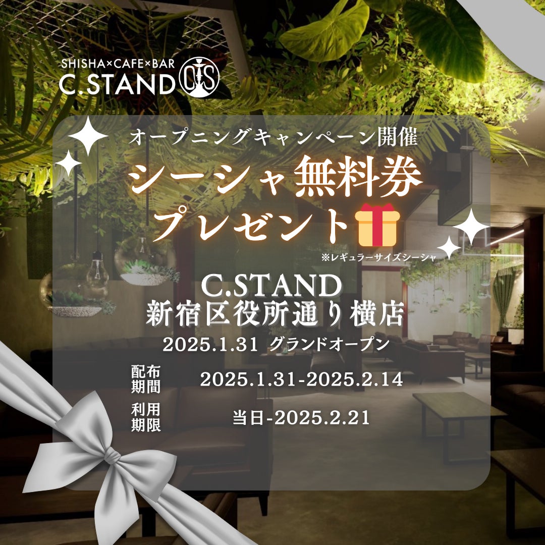 【C.STAND新宿区役所通り横店が1月31日オープン!】シーシャ無料キャンペーン実施!