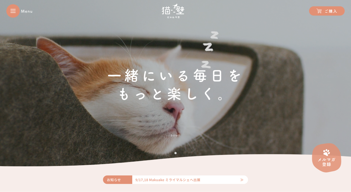 このたび、猫壁を「使うだけではなく、この商品を好きでいて下さるお客様同士でより良いものを作り出したい」という想いからコミュニティ【猫壁ひろば】を立ち上げました。コミュニティでは、猫好き・にゃんぺき好きの方々が互いに”こだわり”を発信し合い、猫と一緒に暮らす楽しさを共有できる場を目指します。