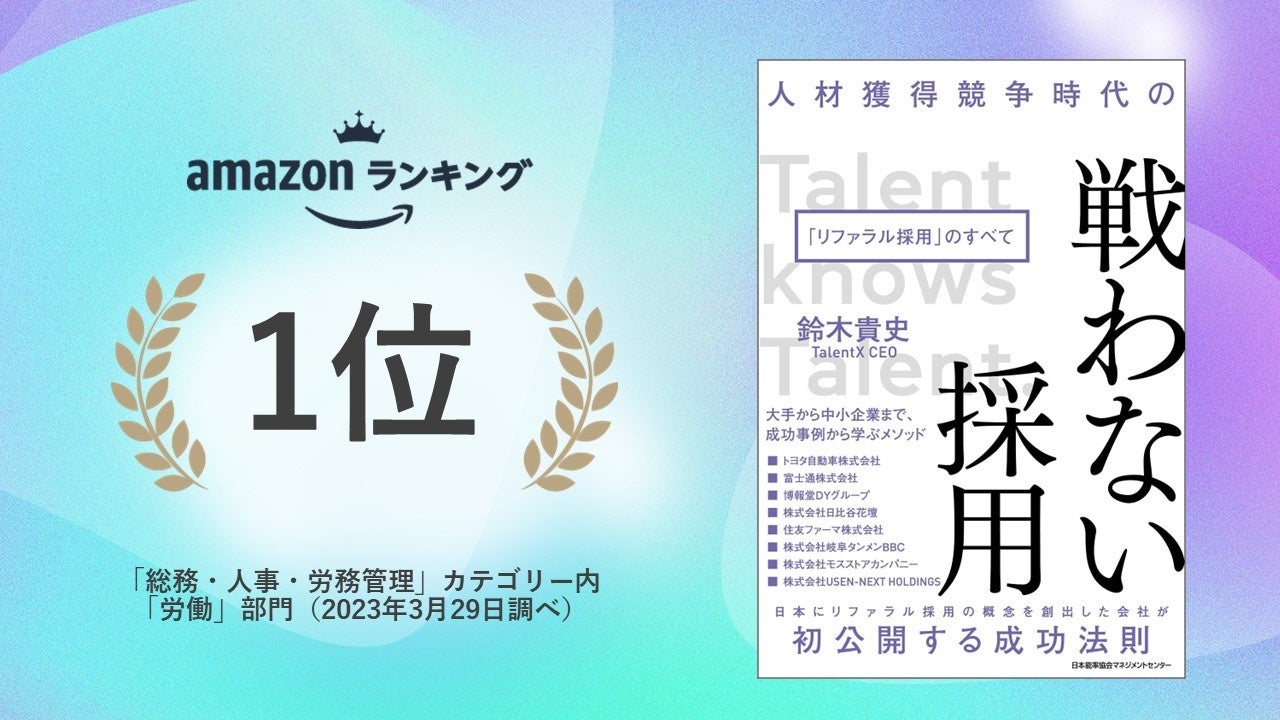 <日本にリファラル採用の概念を啓蒙したTalentX代表・鈴木貴史の新著書> 『人材獲得競争時代の 戦わない採用 「リファラル採用」のすべて』 Amazonランキング1位を獲得!