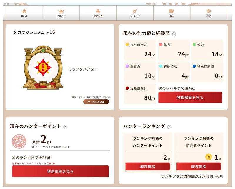 トレーニングクエストURL: https://huntersvillage.jp/huntercat/go_out