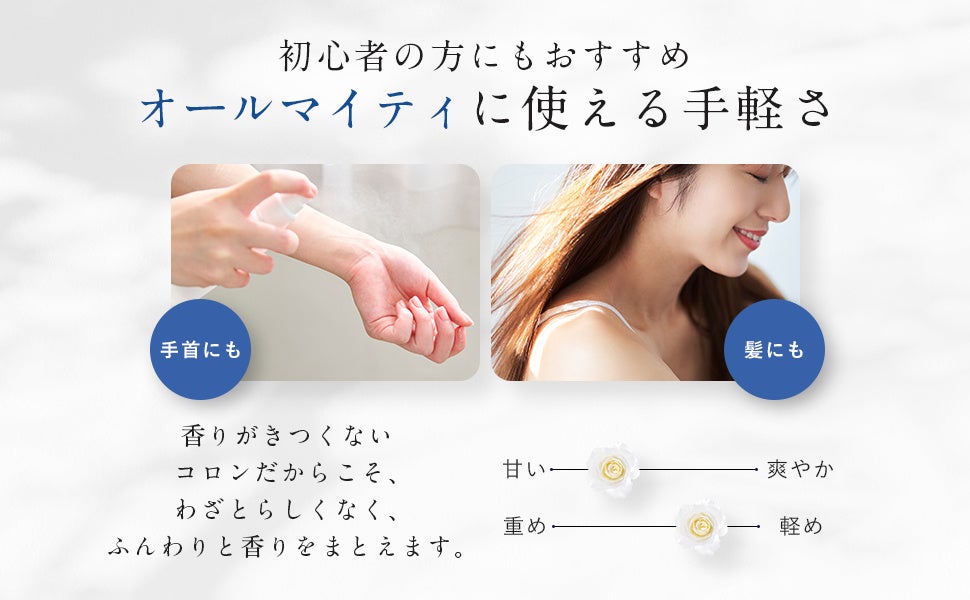手軽でわざとらしくないから、香水初心者の方へもオススメです。