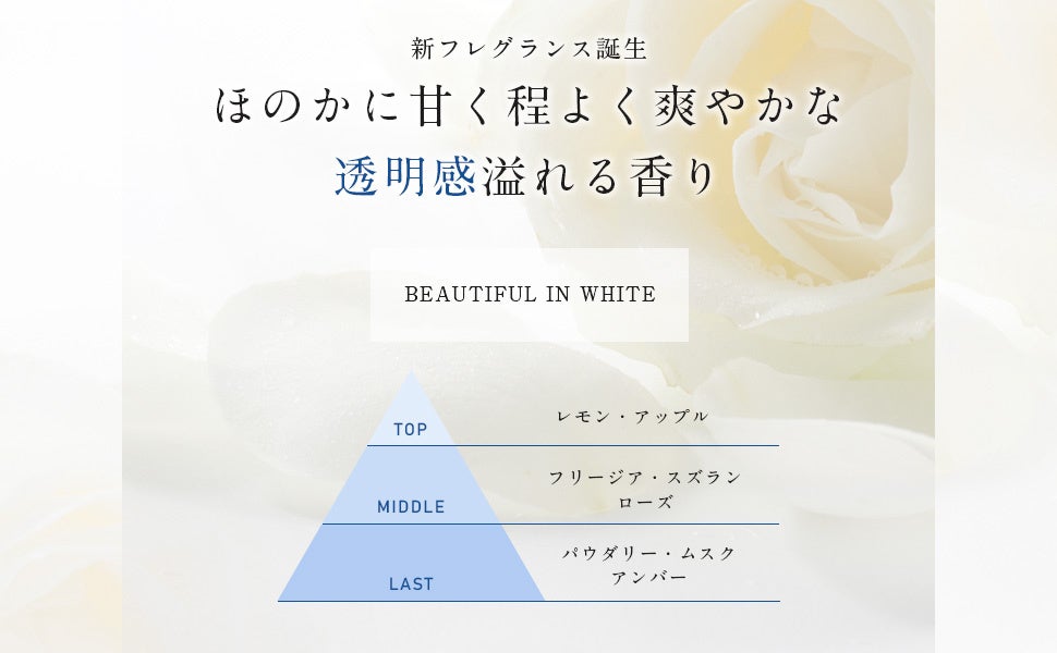 ~ 石けんのような香りから清潔で甘く優しい香りへ広がっていきます ~