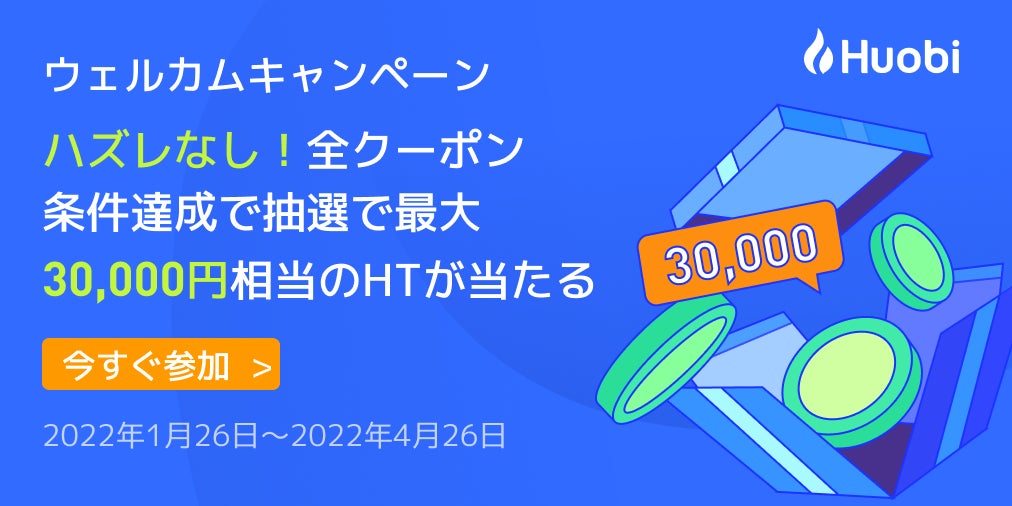 フォビジャパン株式会社(本社:東京都港区、以下「当社」)は1月26日(水曜日)より「ウェルカムキャンペーン」を開催します。国内取扱いペア数No.1*取引所のフォビジャパン、「顧客本位」というグループの理念に基づいて、「ウェルカムキャンペーン」を通して、抽選で最大30,000円相当の暗号資産が当たる機会を提供します。(*2021年9⽉14⽇時点、当社調べ)